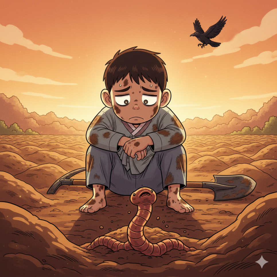 이 작품은 단순히 “부지런해야 한다”는 교훈을 말하지 않습니다. 노력은 때로 당장 보상으로 돌아오지 않지만, 쌓이고 쌓여 뜻밖의 열매가 된다는 사실을 보여줍니다. 황금은 땅속에 묻혀 있지 않았습니다. 황금은 삽을 들고 흙을 뒤집던 순간, 포기하지 않고 콩을 심던 결심 속에 있었습니다. 유쾌한 만담체 문장과 익살스러운 상황 전개는 아이들의 웃음을 끌어내면서도, 마음 깊은 곳에 오래 남는 메시지를 전합니다. 이 책은 게으름을 이겨낸 한 사람의 성장 이야기이자, 땀 흘린 시간은 절대 사라지지 않는다는 희망의 이야기입니다.