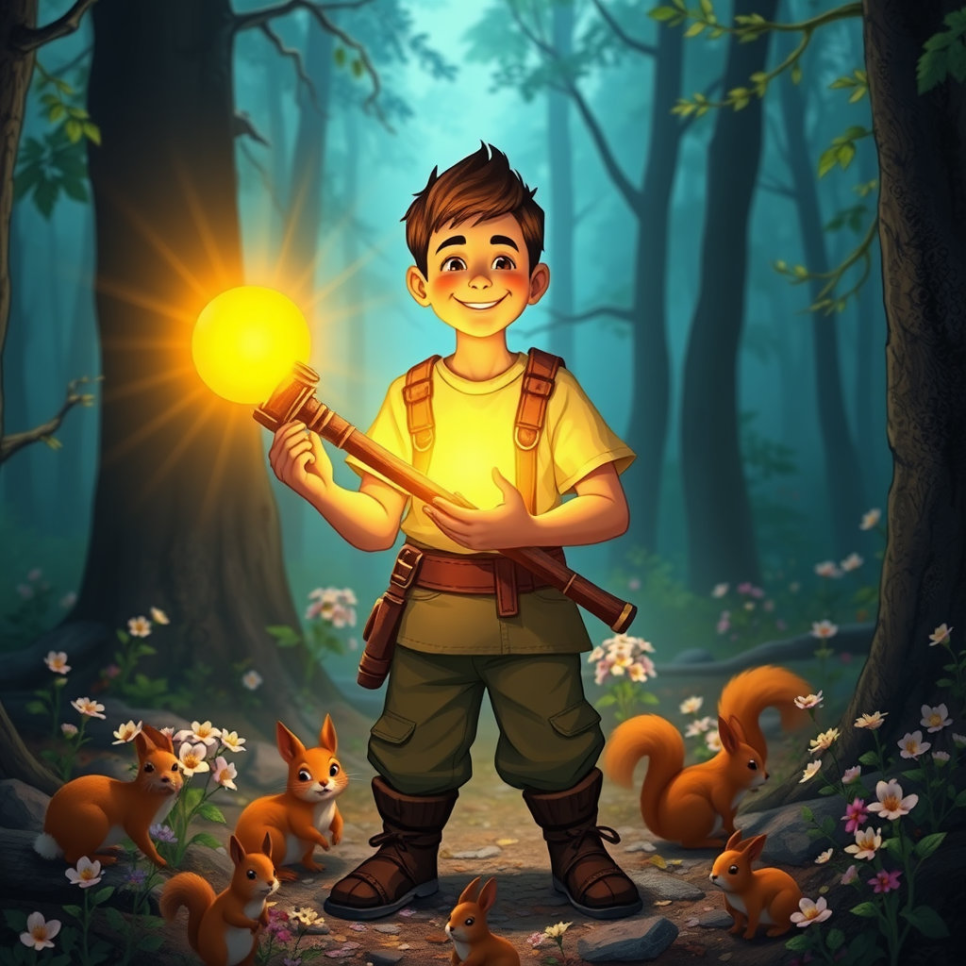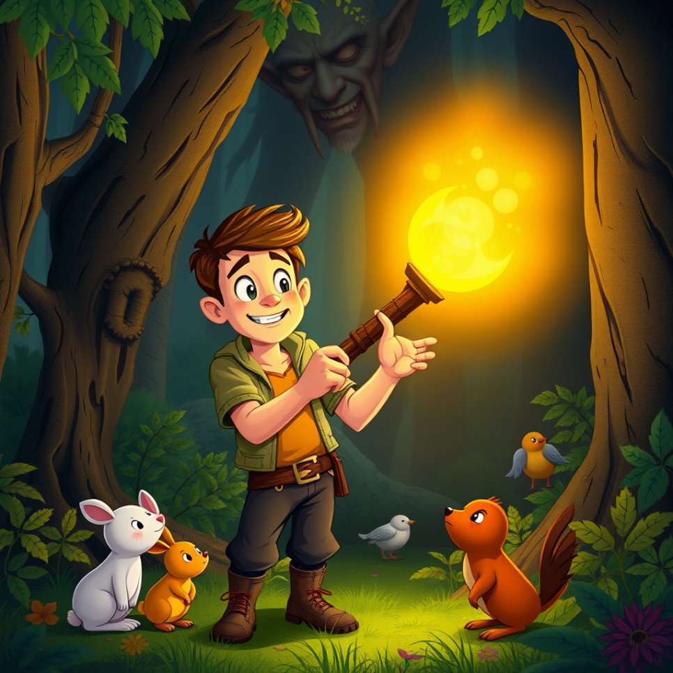 마음 착한 나무꾼 총각은 여전히 도깨비 방망이로 마을 사람들을 도우며 행복하게 살았습니다. 그는 방망이를 통해 얻은 것을 항상 이웃과 나누었고, 그의 따뜻한 마음은 마을에 끊임없이 행복을 가져다주었어요. 총각의 착한 마음은 마치 도깨비 방망이처럼, 뚝딱! 하고 기쁨과 사랑을 만들어내는 신기한 힘을 가지고 있었던 것이죠. 마을 사람들은 서로 돕고 아끼며 더욱 행복하게 살아갔고, 욕심 많은 영감조차도 가끔은 총각에게 고마운 마음을 표현하곤 했답니다. 이 이야기처럼, 우리 마음속에도 착한 마음을 뚝딱! 하고 꺼내어 주변 사람들에게 나누어 준다면, 세상은 더욱 따뜻하고 행복한 곳으로 변할 거예요. 우리 모두 마음속에 있는 도깨비 방망이를 좋은 곳에만 사용하기로 약속해요!