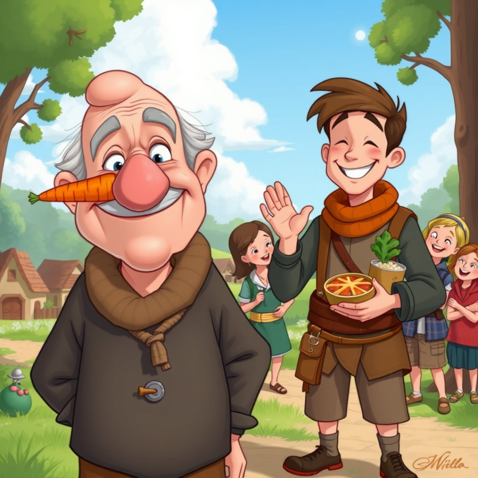 총각의 옆집에는 욕심쟁이 영감이 살고 있었는데, 그는 늘 남의 것을 탐내고 자기 몫만 챙기려는 심술궂은 사람이었어요. 가진 재산은 꽤 많았지만, 영감의 욕심은 끝이 없었고, 늘 더 많은 것을 바라며 불평불만을 늘어놓았지요. 마을 사람들은 그런 영감을 멀리했지만, 영감은 아랑곳하지 않고 자기 욕심만 채우기에 바빴답니다. 이렇게 마음 착한 총각과 욕심 많은 영감은 같은 마을에 살면서도 아주 다른 삶을 살아가고 있었어요. 곧 이 두 사람에게 신기한 일이 벌어질 거라는 것은, 그때까지만 해도 아무도 알지 못했답니다.