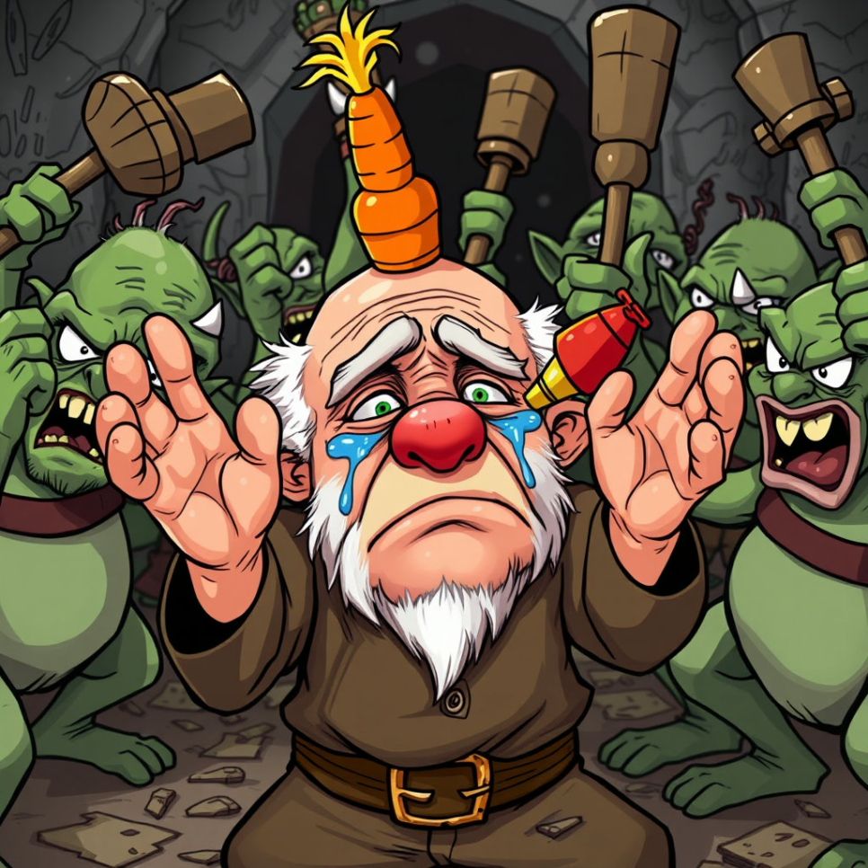 영감의 뻔한 거짓말과 속셈을 알아챈 도깨비들은 화가 머리끝까지 치밀어 올랐습니다. "이 괘씸한 인간! 감히 우리 도깨비 물건을 탐내다니!" 덩치 큰 도깨비가 으르렁거리자, 다른 도깨비들도 몽둥이를 휘두르며 영감을 위협했습니다. 영감은 혼비백산하여 "잘못했습니다! 한 번만 용서해 주세요!" 하고 빌었지만, 이미 화가 난 도깨비들의 귀에는 아무 소리도 들리지 않았어요.
