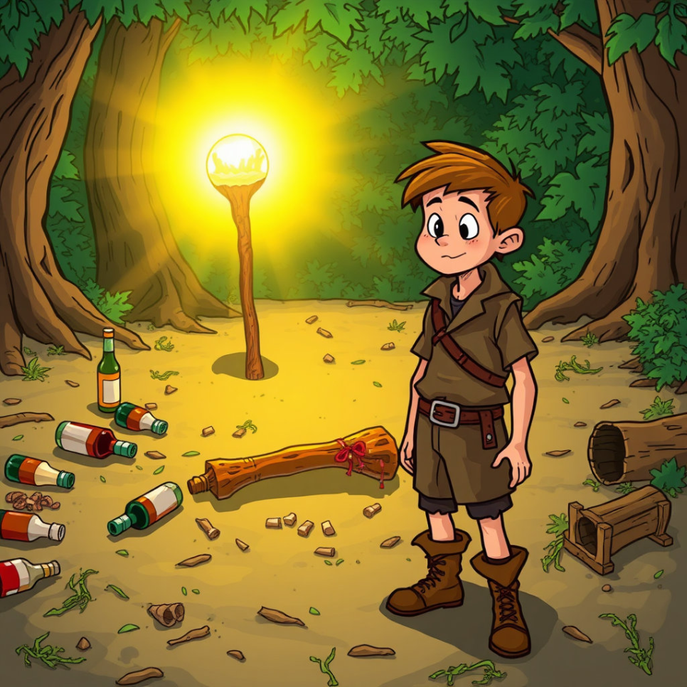 그런데 이게 웬일일까요! 도깨비들이 정신없이 떠나면서 깜빡 잊고 도깨비 방망이를 두고 간 것이 아니겠어요! 총각은 반짝이는 방망이를 발견하고 깜짝 놀랐습니다. "이걸 내가 가져도 되는 걸까?" 잠시 망설였지만, 주변에는 아무도 없었어요. 총각은 혹시 도깨비들이 다시 돌아올까 싶어 방망이를 들고 서둘러 그 자리를 떠났습니다. 숲길을 걸어 돌아오는 내내 총각의 마음은 두근거렸어요. 신기한 방망이를 손에 넣게 되었으니 기쁘기도 했지만, 도깨비들이 알게 되면 화를 내지 않을까 걱정도 되었답니다. 하지만 착한 총각은 이 방망이를 함부로 쓰지 않고, 좋은 일에 써야겠다고 다짐했어요.