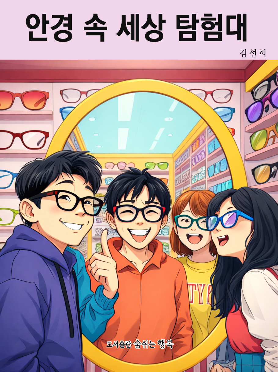 검사 후 민수는 안경을 고르러 간다. 다양한 색깔과 모양의 안경이 줄지어 있고, 민수와 친구들은 서로 안경을 써보며 웃는다. 돋보이는 큰 안경, 알록달록한 작은 안경, 민수는 하나하나 써보며 재미있어한다. “이 안경은 나랑 잘 어울릴까?” 민수는 고민하며 거울 앞에서 얼굴을 찡그리기도 하고 웃기도 한다.
