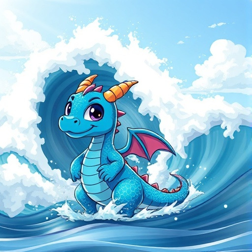 용은 몸을 길게 펼쳐 거대한 파도 앞에 섰습니다. 그리고 자신의 힘으로 파도를 막아냈습니다.