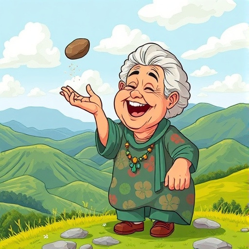 그 순간, 설문대 할망은 두 손으로 흙을 움켜쥐고 바다 위에 던졌습니다. 그러자 놀라운 일이 벌어졌습니다. 작은 흙덩이는 언덕이 되었고, 커다란 돌은 산이 되었습니다.