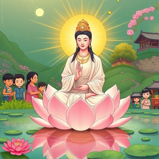 연꽃 속에서 나타난 관세음보살의 첫 번째 기적