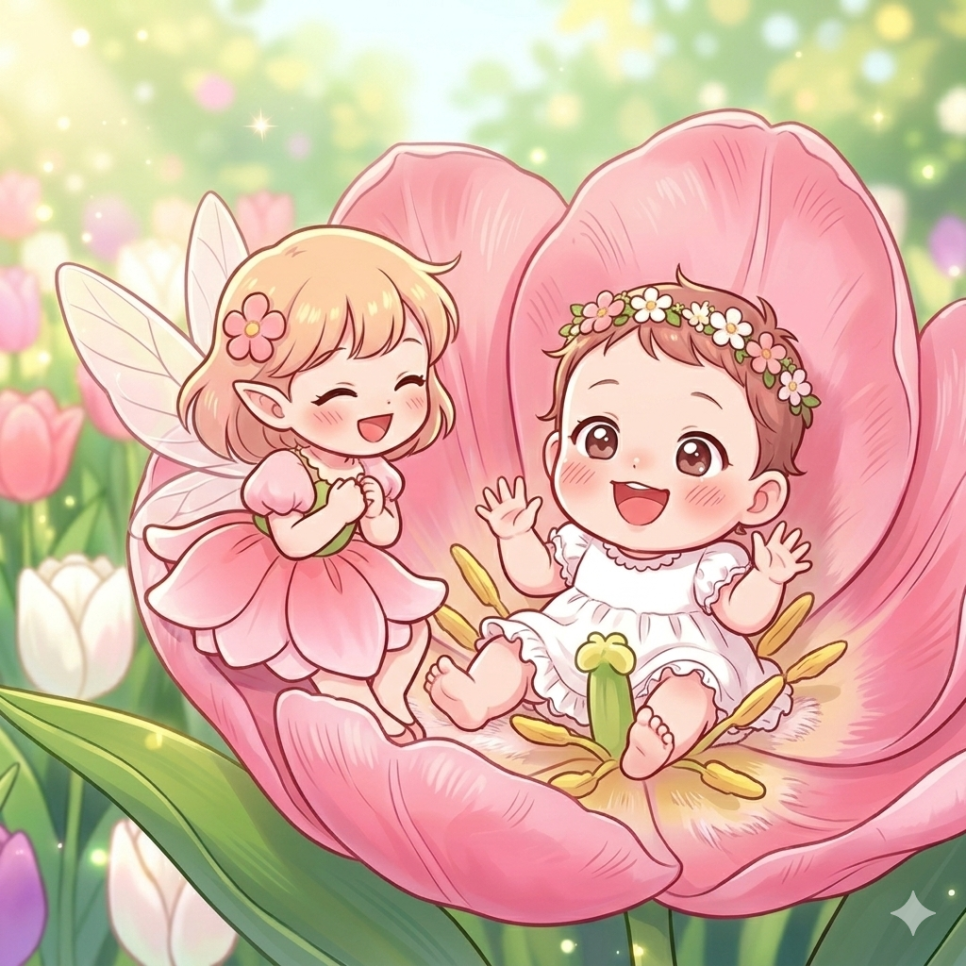 — 튤립 꽃잎 안에서 태어난 아주 작은 아기 이야기