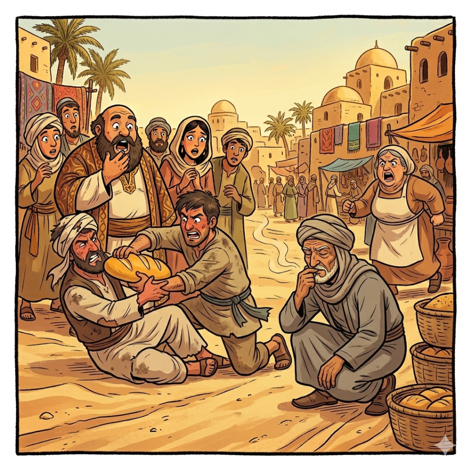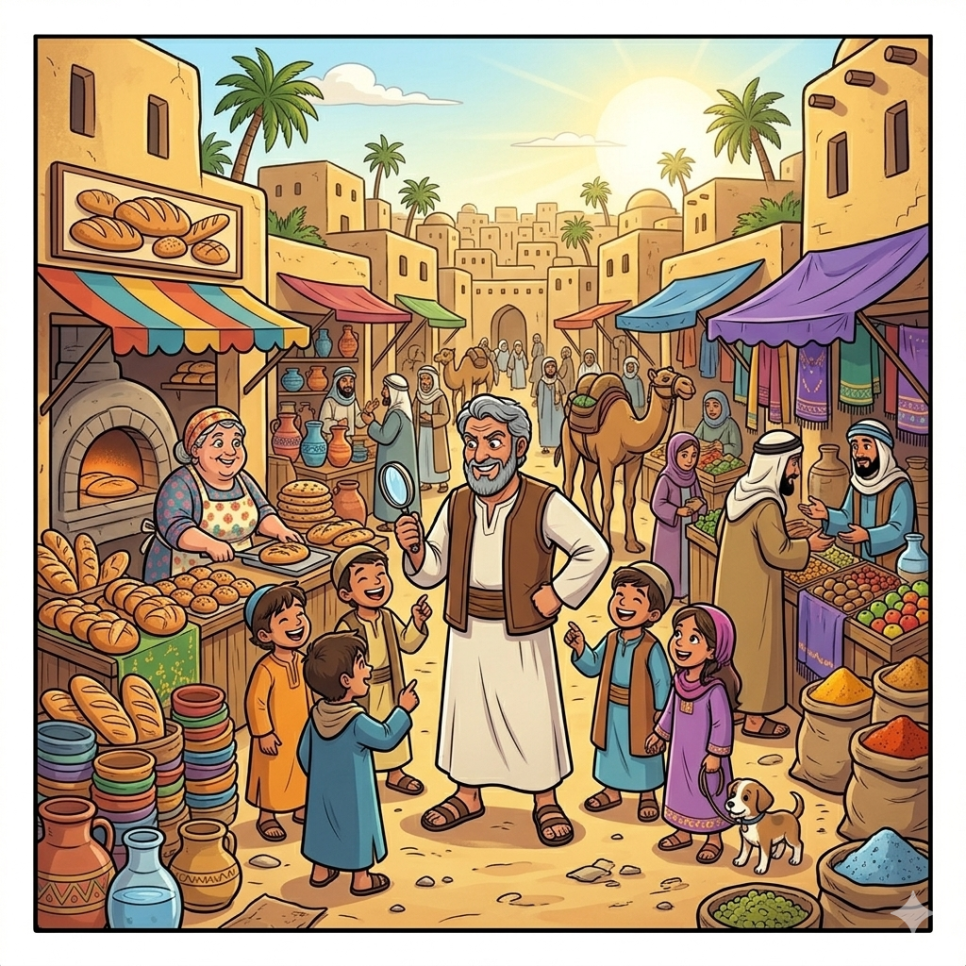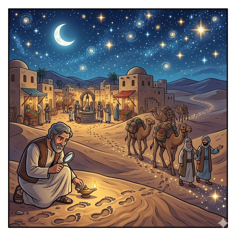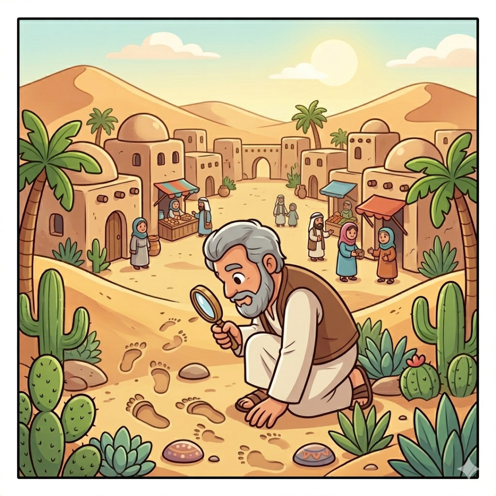 우마르의 방법은 때로는 장난처럼 보이기도 합니다. 우물 옆에 ‘물 괴물’이 나타났다는 표지판을 세우기도 하고, 밀가루를 뿌려 도둑의 발자국을 찾기도 하지요. 하지만 그 엉뚱한 생각 속에는 사람들을 웃게 만드는 따뜻한 지혜가 숨어 있습니다.