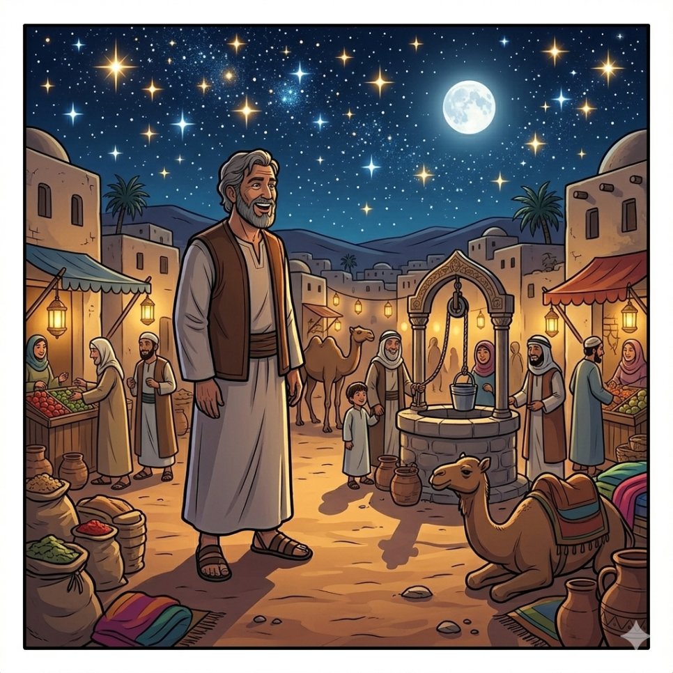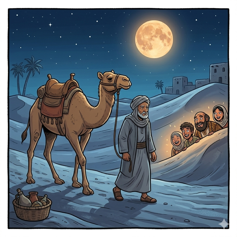 어느 날 밤, 우마르는 사막에서 낙타를 돌보고 있었어요.