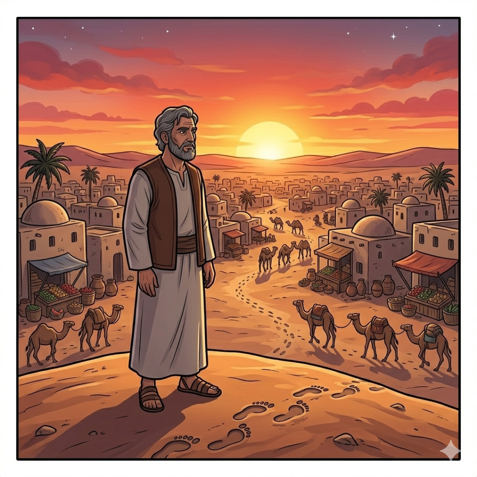 우마르는 여전히 마을을 돌아다니며 많은 것을 보고 있습니다. 모래 위에 남은 발자국, 시장에서 들려오는 웃음소리, 밤하늘에 반짝이는 별빛까지 모두 우마르에게는 하나의 이야기입니다.