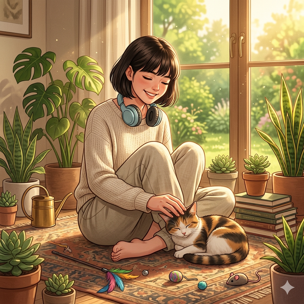 누구의 연락도 없는 고요한 저녁 시간. 지안이가 그 정적을 외로움이 아닌 '축복'으로 바꾸어가는 그녀만의 감각적인 취미와 루틴들.