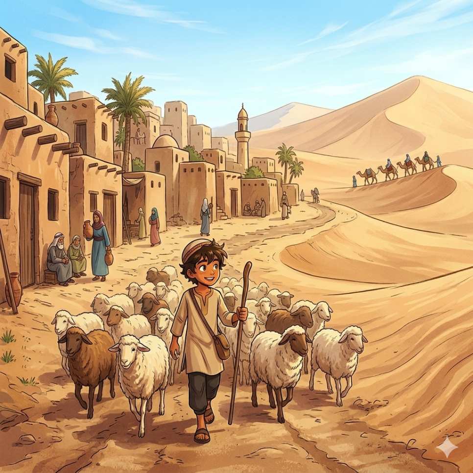 다음 날 아침, 아민은 양들을 데리고 사막으로 나갔습니다.