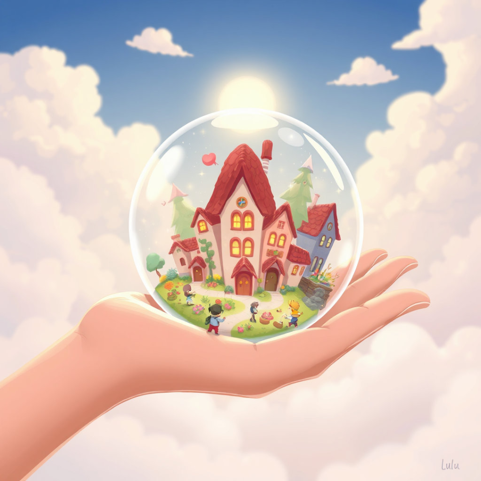 루루는 공방 구석에서 투명한 유리 구슬을 발견했어요. 손에 쥐자 구슬 안에서 작은 마을과 사람, 나무들이 움직였죠. “와, 진짜 살아 있어!” 루루가 소리쳤어요. 유리 구슬 속 마을은 햇빛에 반짝이며 루루를 부르는 듯했어요. 루루는 손끝으로 구슬 속 길을 따라 작은 요정들을 만나며 모험을 시작했답니다.