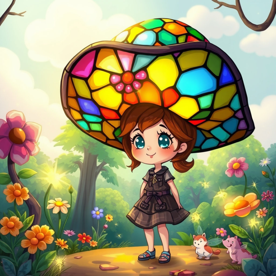 루루는 공방에서 발견한 색유리 모자를 쓰자, 모자 속으로 작은 세계가 펼쳐졌어요. 모자 안에서 작은 다리와 강, 나무들이 움직이며 루루를 새로운 모험으로 안내했죠. 루루는 모자를 쓰고 손끝으로 길을 따라가며 새로운 유리 요정 친구들을 만났어요.