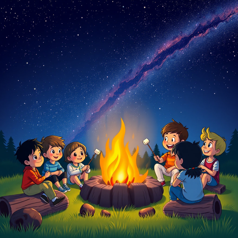 저녁이 되자, 아이들은 정원에 모닥불을 피웠다. 밤하늘에는 별들이 쏟아졌다. 아이들은 별자리를 찾고, 소원을 속삭이며 행복한 시간을 보냈다. “내일도 또 재미있겠지?”