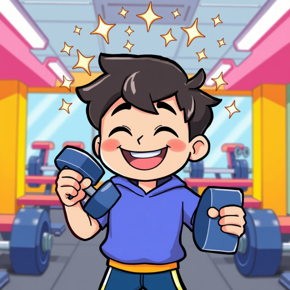 토토는 운동을 할수록 땀이 주르르 흐르는 걸 느꼈습니다. 처음에는 불편했지만, 이제는 그 땀방울이 반짝이는 보석처럼 느껴졌습니다. “이건 내가 열심히 했다는 증거야!” 토토는 벤치프레스에서 힘껏 무게를 들어 올리며 마음속으로 외쳤습니다. 땀이 눈을 가려도 포기하지 않고 끝까지 버텼지요. 운동이 끝난 뒤, 헬스장 바닥에는 작은 물방울이 반짝이고 있었습니다. 토토는 미소 지으며 생각했어요. “내 땀방울이 내 꿈을 키우는 거야.”