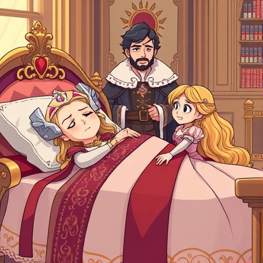 궁전의 모든 신하들은 공주를 사랑했고, 왕도 늘 proud 했어요. 하지만 왕비는 오래전부터 몸이 아팠어요. 그래서 공주만 보면 더 걱정 가득한 눈으로 오래 바라보곤 했답니다.