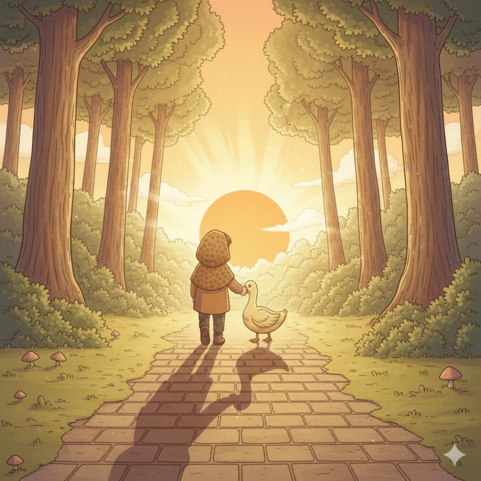 막내는 여전히 가난했지만, 마을에서 가장 환한 웃음을 가진 아이가 되었습니다. 황금 거위는 더 이상 사람을 붙게 하지 않았고, 그저 아이 곁에서 평범한 거위처럼 살았습니다. 사람들은 말했습니다. “진짜 황금은 마음이었어.” 막내는 오늘도 숲길을 걸으며 누군가를 도울 기회를 찾습니다. 친절은 그렇게 또 다른 기적의 씨앗이 되었습니다.