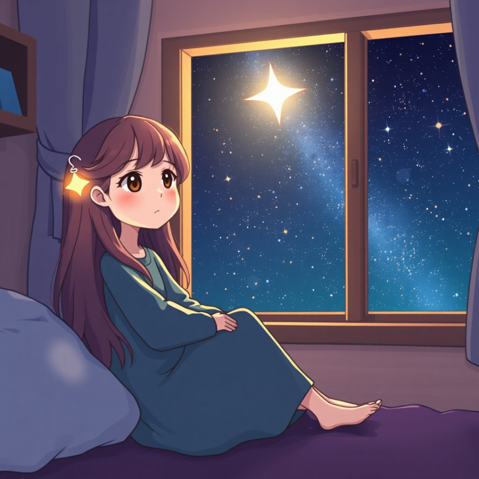 밤하늘을 바라보던 소윤이는 갑자기 하늘에서 반짝이는 작은 별이 쏟아지는 걸 봤어요. 그 별 하나가 소윤의 가슴속으로 쏙 들어왔지요. 깜짝 놀라 잠에서 깼지만, 뭔가 특별한 기분이 남아 있었어요.