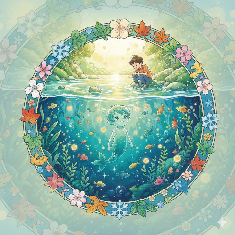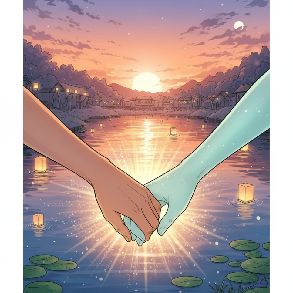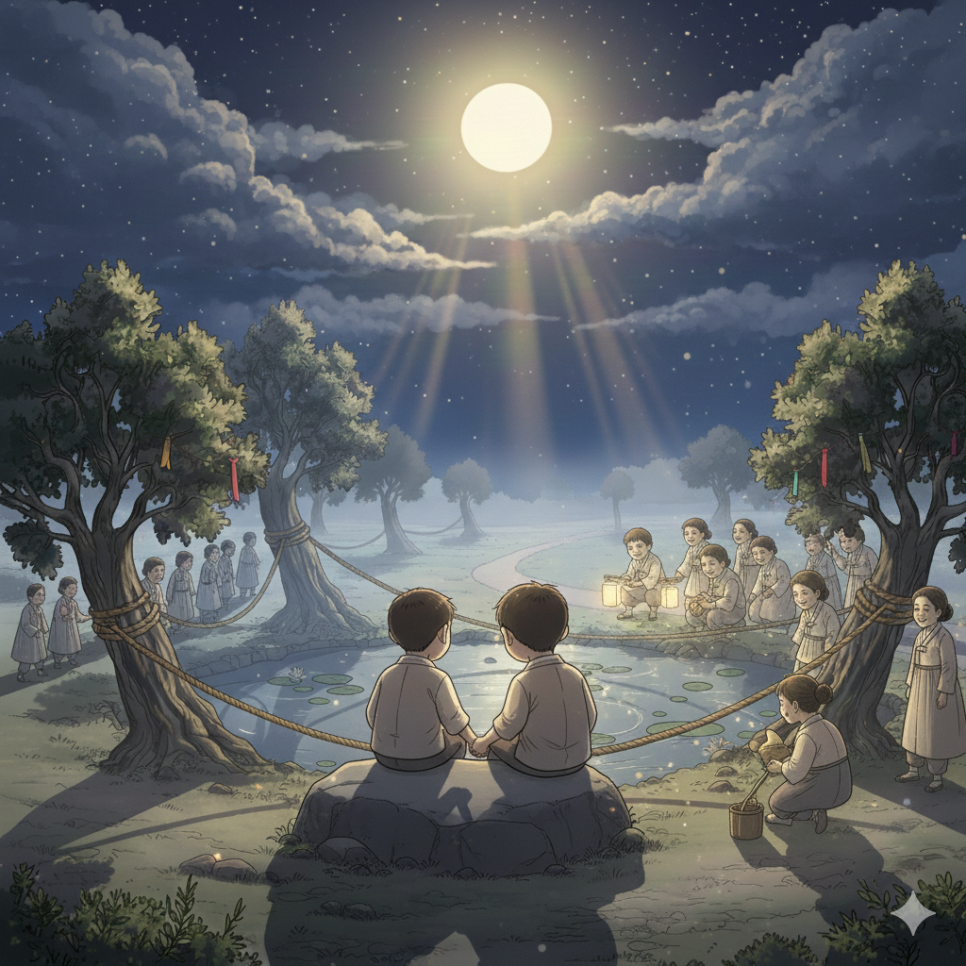 그리고 마침내 보름달이 뜬 밤, 마을 전체가 모여 연못 축제를 엽니다. 사람들의 따뜻한 마음이 모이자, 물결이는 무서운 물귀신에서 마을을 지키는 온화한 수호령으로 변화합니다. 이제 연못은 두려움의 장소가 아니라 마을 사람들에게 평안과 치유를 주는 특별한 곳이 됩니다.