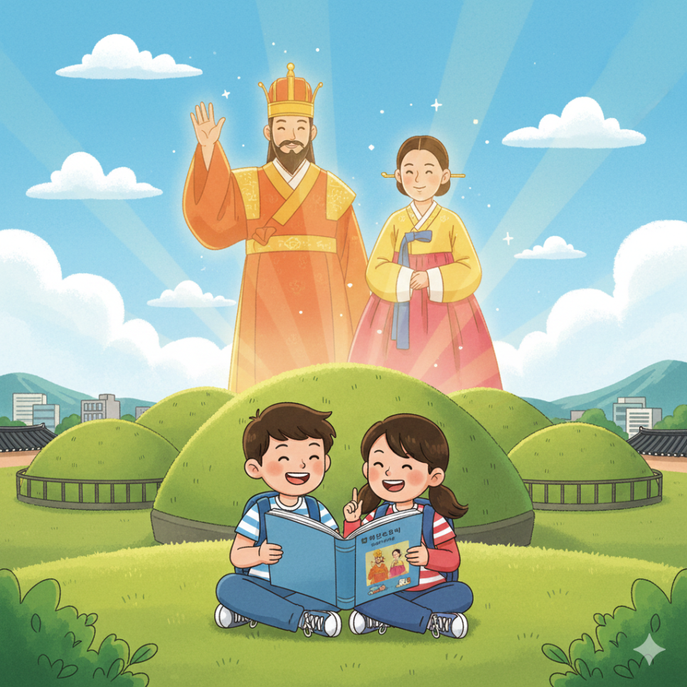 어린이 여러분, 신비로운 빛의 아이 박혁거세와 알영 부인의 이야기를 즐겁게 읽었나요? 지금도 경주에 가면 박혁거세가 태어난 우물 '나정'과, 그가 잠들어 있는 다섯 무덤 '오릉'을 실제로 만날 수 있어요. 천 년도 더 지난 이야기지만, 박혁거세가 우리에게 남긴 '세상을 밝게 다스리겠다'는 약속은 여전히 전해지고 있답니다.