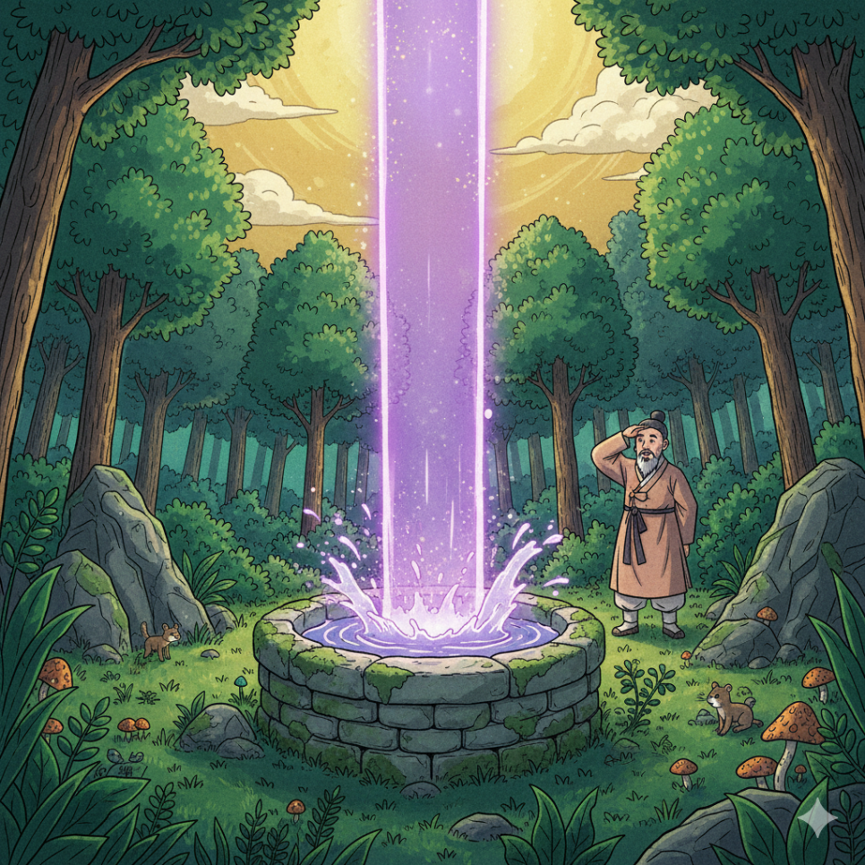 기도를 마치고 내려오던 돌산 고허촌의 촌장 소벌공은 깜짝 놀라 멈춰 섰어요. 양산 기슭에 있는 '나정'이라는 우물가 근처에서 눈부시게 밝은 자줏빛 기운이 하늘에서 땅으로 수직으로 내리꽂히고 있었기 때문이에요. "저게 무엇이지? 불이 난 건가, 아니면 하늘의 응답인가!" 소벌공의 외침에 다른 촌장들도 걸음을 멈추고 그곳을 바라보았어요. 빛은 마치 거대한 기둥처럼 보였고, 그 주변에는 은은한 무지개까지 피어올랐어요. 마을 사람들도 하나둘씩 밖으로 나와 이 기이한 광경을 지켜보았지요. 빛이 너무나 강렬해서 눈이 부셨지만, 소벌공은 이 빛이 분명 마을에 큰 변화를 가져올 징조라고 생각하며 가슴이 두근거리기 시작했어요.
