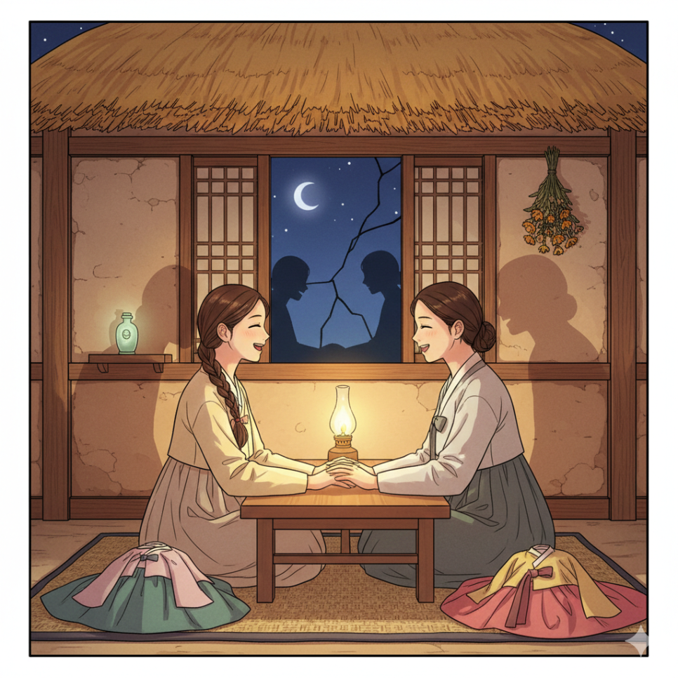 그날 저녁, 지은이네 작은 집에는 따뜻한 저녁 식사 준비하는 소리와 웃음소리가 가득했습니다. 비록 여전히 가난했지만, 서로가 있어 세상 무엇보다 행복한 모녀였어요. 지은이는 어머니를 도와 밥상을 차리며 생각했습니다. '엄마가 건강하시니 정말 좋다. 나는 세상에서 가장 행복한 아이야.'