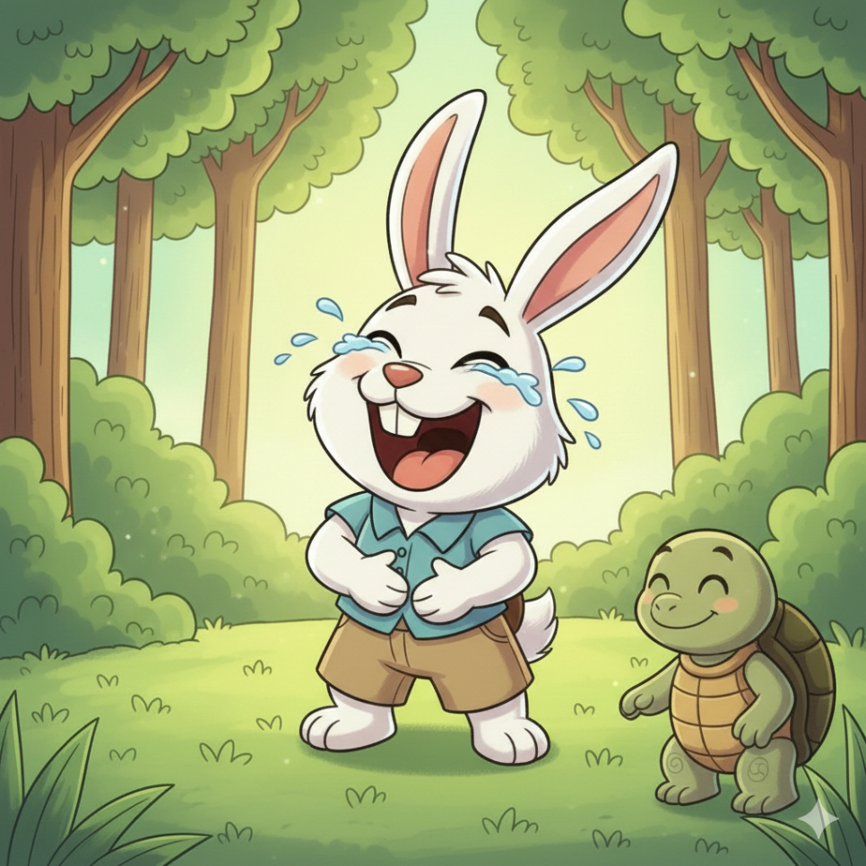토끼는 자신도 모르게 피식 웃고 말았습니다. 그리고 곧 배를 잡고 크게 웃었습니다.